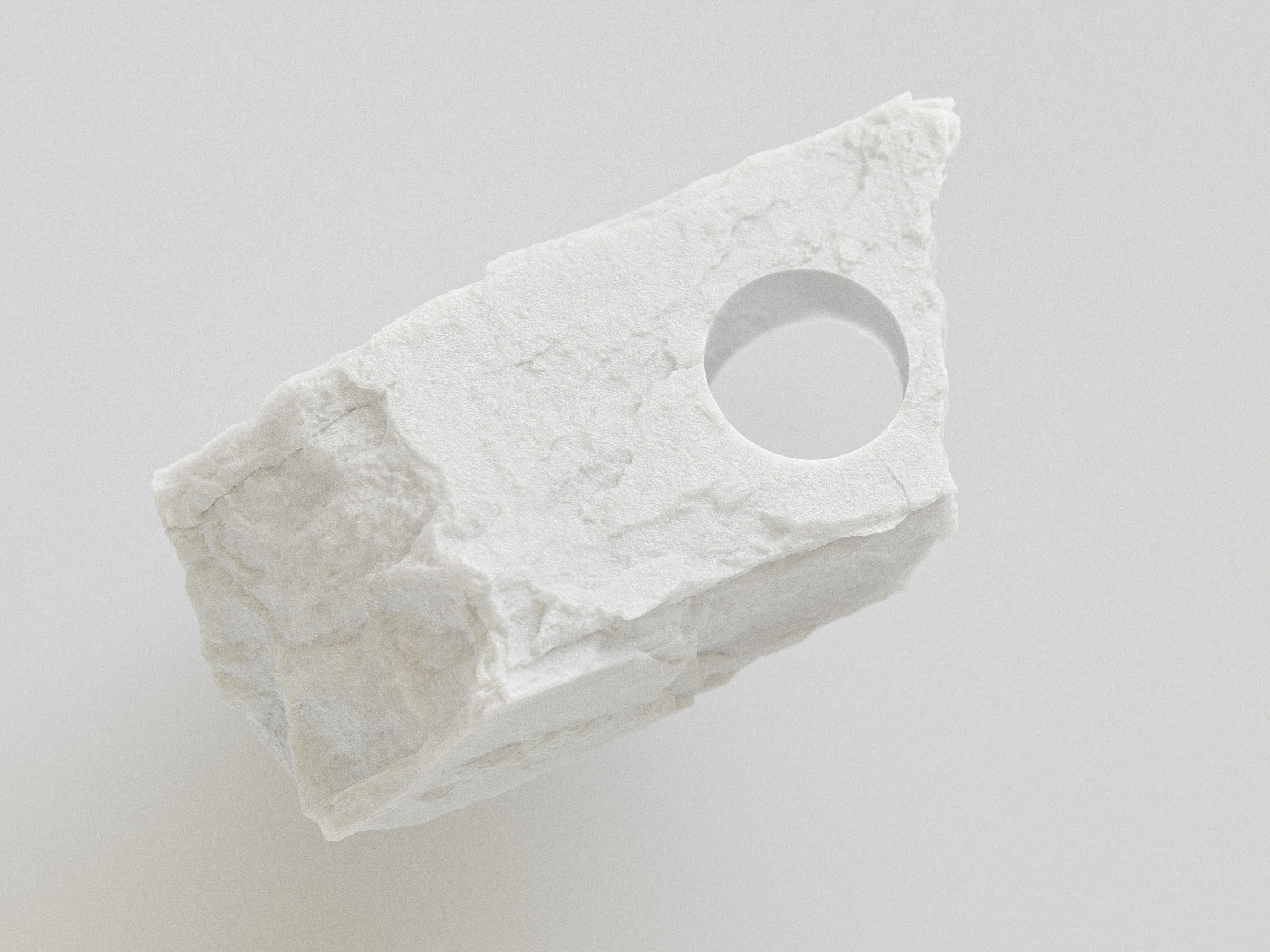 “Karst Stone Paper” is created from stone, not trees. The simplicity of this idea is the true genius of the product. Therefore we reflected this concept in a literal visual translation, pairing the crude haptic of stone with the fragile elegance of thin paper.